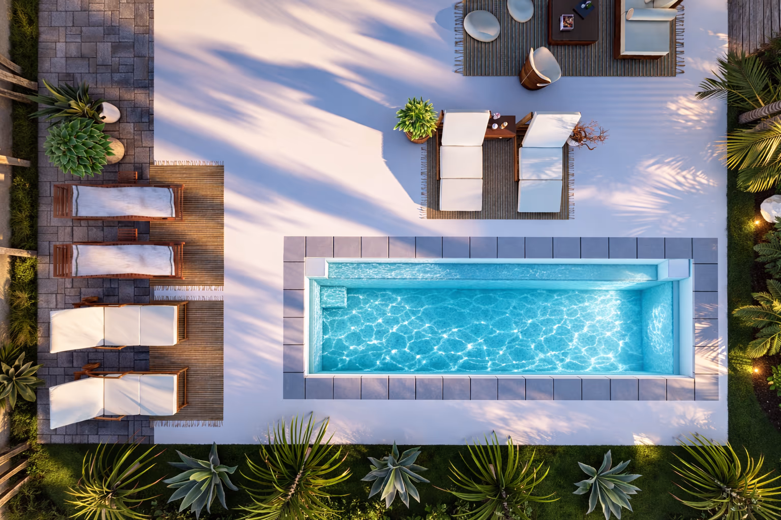 Fibreglass pools are made from a mould, so you’ll need to select from a range of moulds. There can be slight modifications (i.e. wet deck, infinity edge) made but not a complete change of shape. At Conquest Pools, we have over 40 moulds. We have pools from 4 metres to over 14 metres in all shapes and sizes, in all orientations. There is something to fit most backyards.